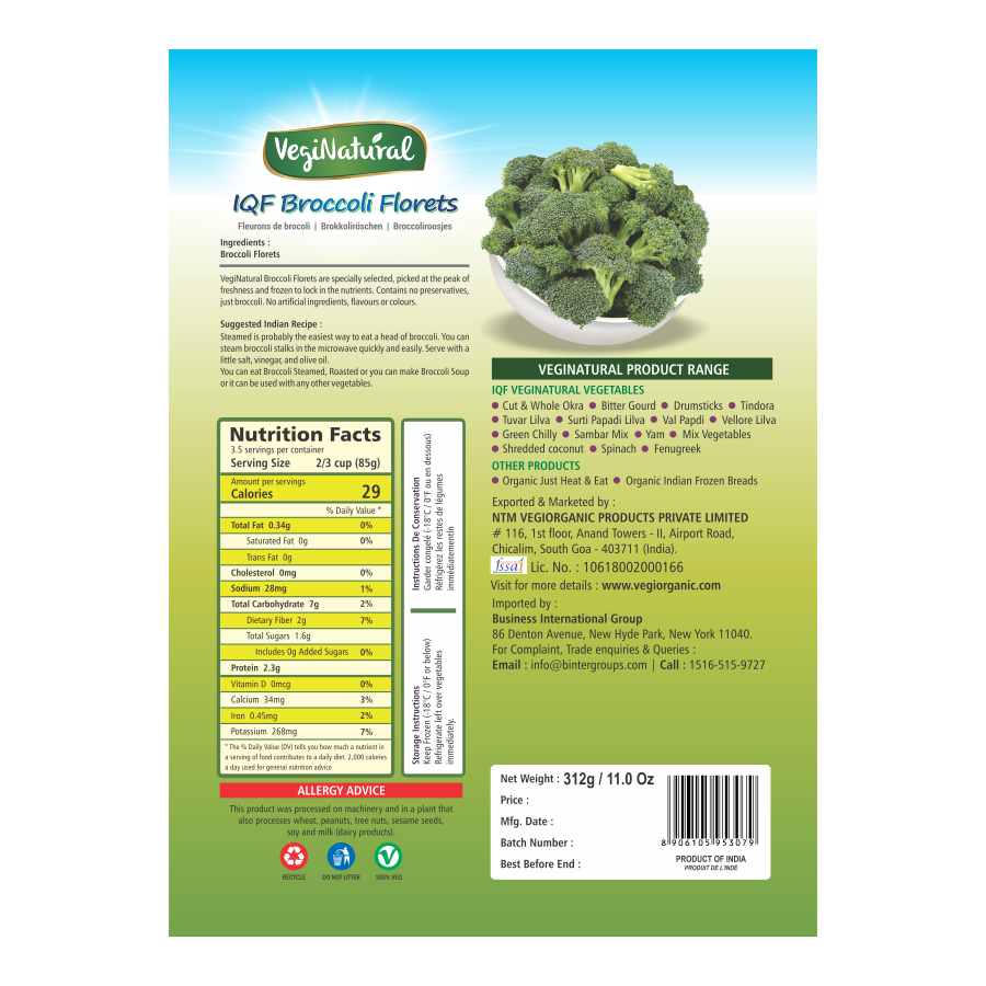 Fresh vegetables are procured directly from farmers & processed in state of art IQF facility